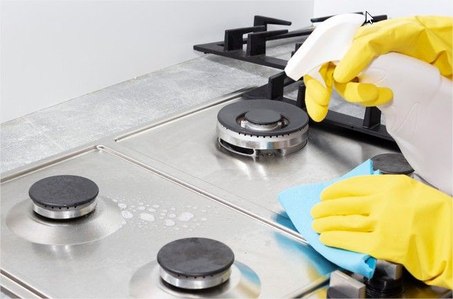 Caranya cukup mudah, semprotkan cairan pembersih tersebut ke beberapa titik di kompor stainless steel.