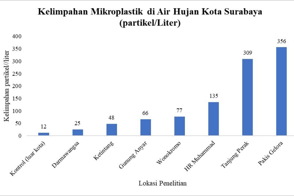 “Faktor lain penyumbang mikroplastik dalam air hujan Kota Surabaya berasal dari pencemaran plastik air laut. Dalam proses siklus air, air laut terevaporasi menjadi uap air dan terkondesasi menjadi awan. Jadi, semakin tinggi tingkat polusi plastik atau mikroplastik dalam air laut, maka akan berdampak pada tingginya tingkat pencemaran mikroplastik dalam air hujan,” pungkasnya.