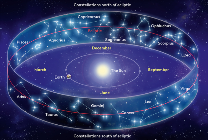 Bangsa Yunani kuno menamai gugusan rasi bintang ini “zodiak,” atau “lingkaran hewan-hewan kecil,” karena banyak rasi bintang yang mewakili hewan. Dalam astrologi, zodiak secara tradisional dibagi menjadi 12 “tanda.” Namun, astronom mengakui bahwa Matahari sebenarnya melintasi 13 rasi bintang setiap tahun, termasuk Ophiuchus, yang sering diabaikan dalam sistem astrologi.