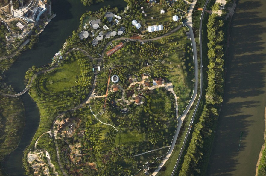 LuxeIsland Eco Farm berada di tepi Sungai Zhujia, merupakan bagian dari pengembangan kawasan LUXEOASIS. Proyek ini dirancang sebagai destinasi publik yang menggabungkan agrowisata, edukasi, rekreasi, serta ruang komunitas. Namun alih-alih tampil sebagai taman tematik buatan, kawasan ini justru terasa seperti lanskap alami yang tumbuh perlahan bersama aktivitas manusia.